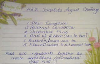 This month, the fabulous A2Z DT member Samantha Bailey, has an awesome recipe challenge for us all. I just love mixing up the challenges each month and when there is awesome Chipboard prize packs up for grabs x3, you definately want to join in the fun! Here is Sam's Recipe to use for this challenge.....